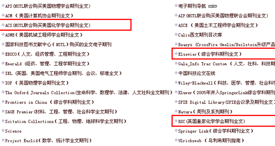 1. 读者可访问RSC的所有电子期刊,包括1841年以来出版的所有期刊; 2. 主站点与国内站点的数据不完全相同,国内站点的数据稍有滞后; 3. RSC主站点上列出的文摘索引数据库很多,但目前我们只能使用以下的4种: